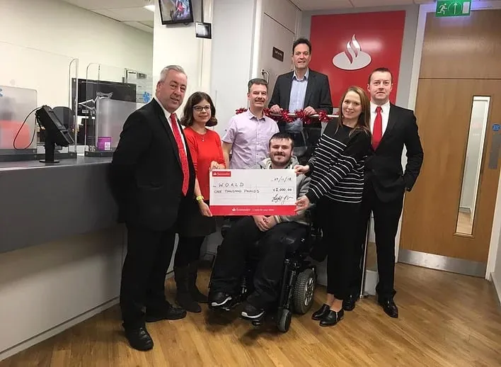 WORLD is delighted to have the support of the Santander Foundation and in particular, we would like to thank Mr Leighton Phillips and Mr David Price at Santander Llanelli branch who applied via their staff-matched funding scheme for £1000 following our successful launch event. Trustees and members of WORLD were presented with the donation in November 2018.